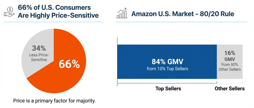 北美市场:对美出口承压,66%的美国消费者对价格敏感度极高。亚马逊美国站已呈现“二八分化”,84%的GMV来自不到10%的顶级卖家。这意味着,留在北美市场,就必须走精细化、企业级运营的路线。